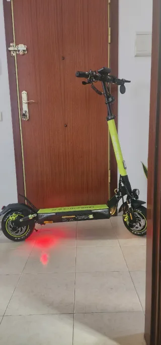 Patinete eléctrico Mascooter S4 en color verde lima y negro. Cuenta con luces LED rojas en la parte trasera. Homologado DGT - Diseño moderno y deportivo. - Ruedas con detalles en amarillo. - Manillar ajustable. Con alarma integrada y algunas mejoras menos de 200 kilometros y mas de 2 años de garantia 3 meses de uso venta en persona