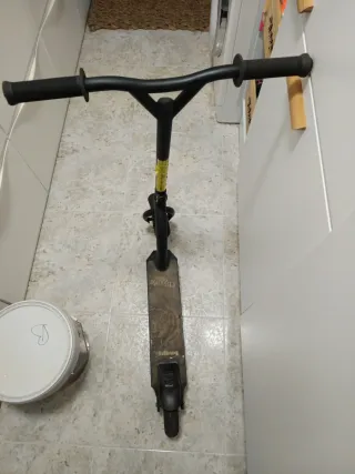 Patinete de estilo libre en color amarillo y negro. - Manillar negro con puños texturizados. - Plataforma con lija antideslizante. - Ruedas negras.