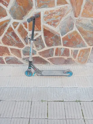 Patinete infantil de color negro y azul, ideal para desplazamientos urbanos.rue Ruedas nuevas aluminio 15 euros cada uno costaron!!! - Manillar ajustable. - Ruedas de goma. - Plataforma antideslizante.