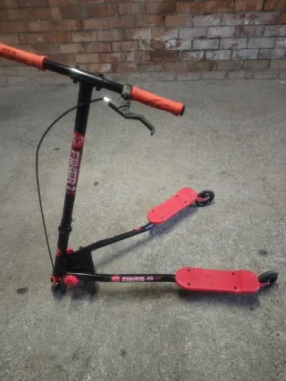 Patinete Y Fliker A3 Air en color rojo y negro. Ideal para derrapar, hacer carving y estilo libre (freestyle). Diseño plegable para un fácil almacenamiento y transporte. Equipado con un freno de mano de respuesta rápida para mayor control y seguridad. Poco uso en buen estado.