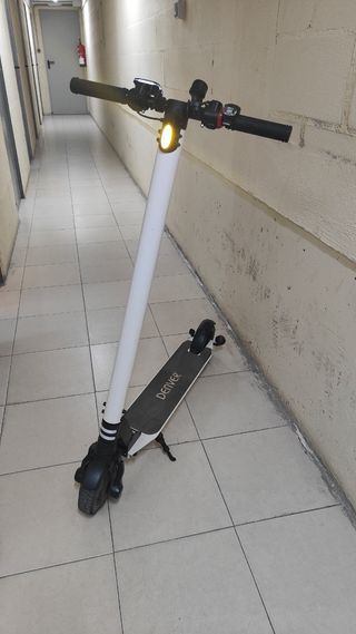 Patinete eléctrico Denver en perfecto estado. Apenas usado. Con su cargador y libro de instrucciones. - Diseño elegante y ligero. - Plegable para facilitar su transporte y almacenamiento. - Velocidad máxima 20km/h. Tiene tres velocidades y control de arranque seguro (arranque directo con acelerador o arranque con empujón de pierna + acelerador). Freno eléctrico delantero y freno de pie trasero. Se ha utilizado en contadas ocasiones. Tiene buena autonomía (8km) aunque obviamente depende del peso y de la velocidad.