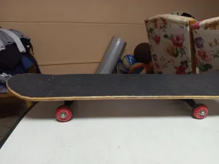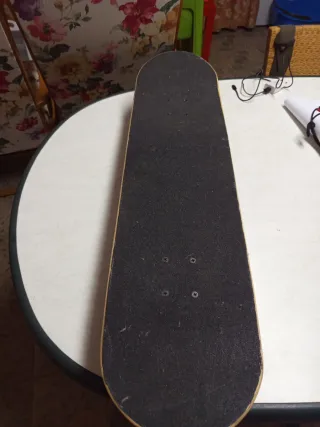 Monopatín con lija negra. - Superficie de lija. - Forma clásica de monopatín.