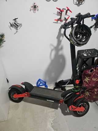Patinete eléctrico Kukirin M4 Pro, modelo original de serie. - Diseño robusto y funcional. - Ruedas todoterreno como nuevas - Manillar ajustable - base grande y con asiento aparte para ponerlo entera 60 km de autonomia reales maxima velocidad 48 km/h cargador incluido motor 500 W picos de hasta 1300 W suspension delantera cambiada mangos cambiados y cubrecables