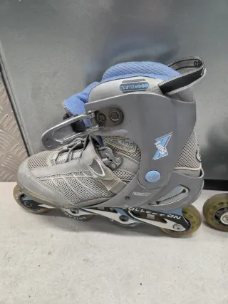 Patines en línea con un diseño moderno y funcional. Viene incluido la bolsa.Talla 39. - Cierre de velcro y hebilla. - Cordones para un ajuste seguro. - Detalle en color azul.