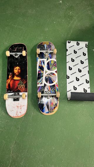 Skate de la izquierda: tabla de JART RENAISSANCE, ejes birdhouse. Tiene uso de varios meses, aun asi los ejes funcionan bien, y la tabla está en buen estado a pesar de los arañazos. lija incluida. Skate de la derecha: Tabla plan B, ejes Iron trucks. Ejes en buen estado, y la tabla no tiene golpes ni rajas. Los vendo por que probe a hacer skate unos meses, y luego no se volvieron a usar. Costaron 120 cada uno nuevos. Por separado: Skate birdhouse: 50€ Skate Plan B:50€