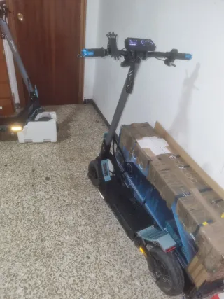 Patinete eléctrico smart gyro con luces LED azules. - Diseño moderno y deportivo. - Manillar ajustable. - Ruedas resistentes. Tiene algunos fallos graves como el mastil esta fijado por un tornillo el patin en si va muy bien el cableado es nuevo no tendra ni 200 kilometros motor de 600w con bateria de 48v 13ham que al estar trucado consumira bastante mas aparte de que le hay que cambiar el sensor de freno delantero debido a estar roto el cable de freno delantero roto y solo le quedaria cambiar pastillas de freno, El patin en si va muy bien incluye tambien cargador