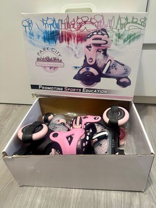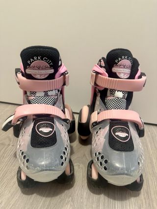 Juego de patines ajustables para niña, con un diseño moderno y divertido. - Talla ajustable de la 30 a la 33. - Ruedas resistentes para un deslizamiento suave. - Cierres de seguridad para un ajuste firme.