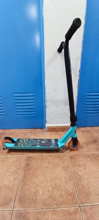 Patinete diseñado para la práctica de freestyle. - Manillar con puños de goma. - Plataforma negra. - Ruedas de color claro.