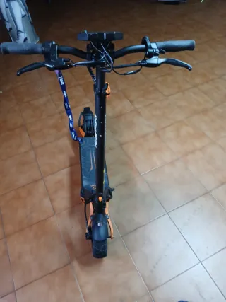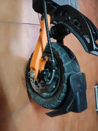 Patinete eléctrico en buen estado, con muy poco uso. - Rueda trasera con motor. - Guardabarros con reflectante naranja. - Luz trasera roja.