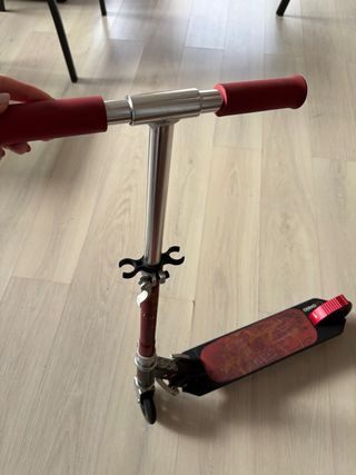 Patinete infantil en buen estado, ideal para paseos. - Color rojo y negro. - Diseño plegable para fácil transporte. - Ruedas para un deslizamiento suave.