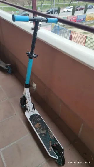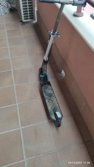 Patinete de la marca Oxelo. - Diseño moderno. - Ideal para desplazamientos urbanos Esta bastante desgastado pero todavia se puede aprovechar mucho. La lija de la base esta bastante desgastada y el general esta algo sucio pero se entregaria limpio y totalmente impecable