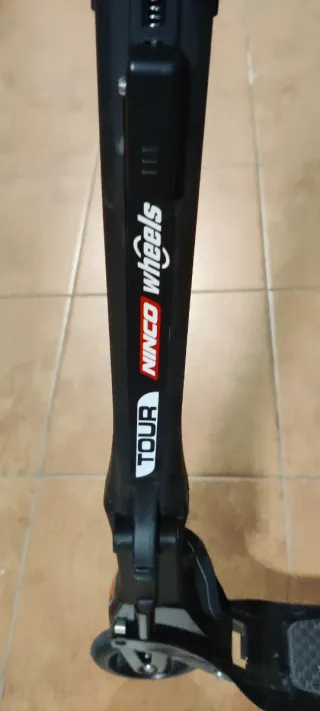 Patinete Ninco wheels Tour. Patinete plegable de color negro. Fácil de transportar y guardar. Con bolsa incluida e instrucciones de plegado. Usado 3 veces. - Diseño compacto. - Ruedas de goma. - Empuñaduras ergonómicas. - Altura regulable.