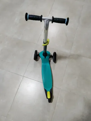 Patinete de tres ruedas de Decathlon, ideal para los más pequeños. Su diseño permite un aprendizaje fácil y seguro. - Tres ruedas para mayor estabilidad. - Manillar ajustable en altura. - Empuñaduras de goma para un agarre cómodo.