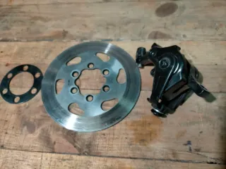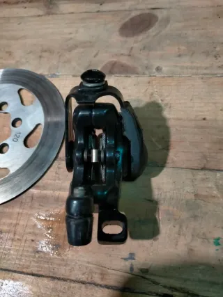 Disco de freno y pinza para patinete. - Disco de freno metálico. - Pinza de freno negra.