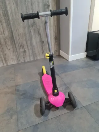 Patinete de tres ruedas de la marca Oxelo, ideal para niños. - Diseño de tres ruedas para mayor estabilidad. - Tengo dos. Uno Color rosa y otro amarillo. - Manillar ajustable en altura. 10€ cada uno