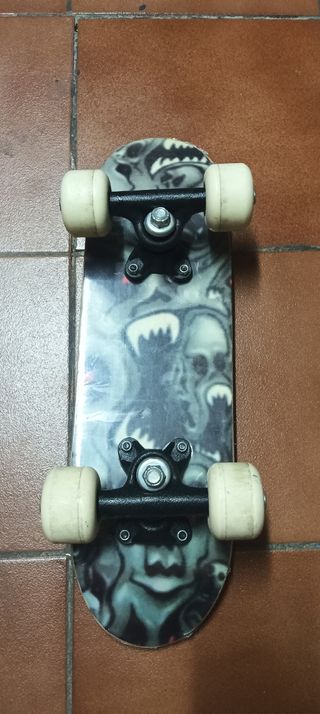Mini patinete con diseño de calaveras. Skateboard