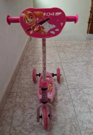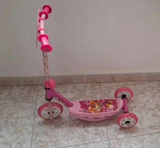 Se vende patinete infantil de Skye, de la Patrulla Canina. - Diseño rosa con Skye. - Tres ruedas para mayor estabilidad. - Manillar ajustable.