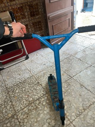 Patinete freestyle en buen estado, ideal para principiantes. - Color azul celeste. - Ligero y fácil de manejar. - Perfecto para iniciarse en el freestyle. Lo vendo pq se me quedò pequeño, tiene las marcas típicas de uso, como extra tiene los pegs. ALGO NEGOCIABLE