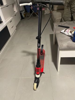 Patinete Oxelo MID 9 en color rojo. Ideal para desplazamientos urbanos. - Manillar ajustable en altura. - Ruedas de gran diámetro para mayor comodidad. - Freno trasero. - Plegable para facilitar su transporte y almacenamiento.