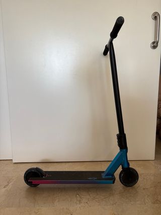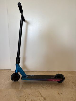 Patinete North Switchblade en muy buen estado y con muy poco uso. Tamaño relativamente pequeño. Tiene un pequeño desperfecto en un embellecedor del manillar. - Diseño con degradado de colores. - Ruedas de alta calidad.