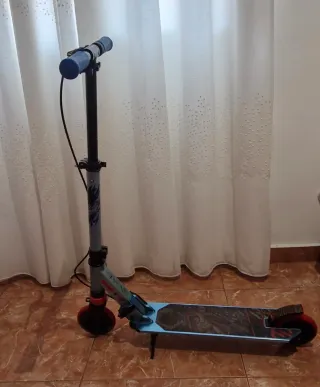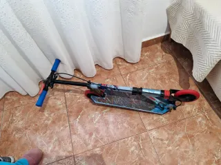 Patinete para adultos en excelente estado, prácticamente sin uso. Ideal para desplazamientos urbanos. - Diseño plegable para fácil transporte. - Ruedas de color azul. - Manillar ajustable en altura.