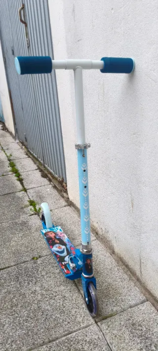 Patinete infantil con diseño de Frozen II. Es plegable y no pesa nada, ideal para los más pequeños hasta los 7 años o más. Apenas está usado, tiene algún roce por lo de más está perfecto. - Personajes de Frozen II. - Colores vibrantes.