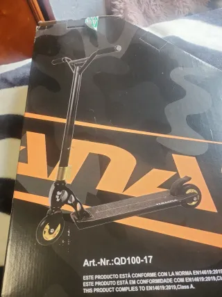 Patinete de estilo libre, modelo QD100-17. - Cumple con la norma EN14619:2019, Clase A. - Diseño en color negro con detalles dorados.