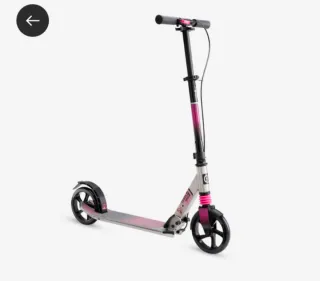 Patinete rosa de la marca Mid9 de Decathlon. Ideal para desplazamientos urbanos. Muy muy poco uso. - Color rosa con detalles degradados. - Ruedas de 200 mm. - Freno trasero. - Manillar ajustable en altura.