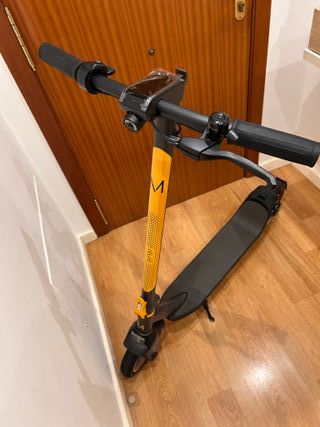 Patinete eléctrico con un diseño moderno y llamativo en color amarillo y negro. - Manillar con puños de goma. - Plataforma antideslizante. - Rueda trasera con guardabarros. - Registrado en la DGT - Precio negociable
