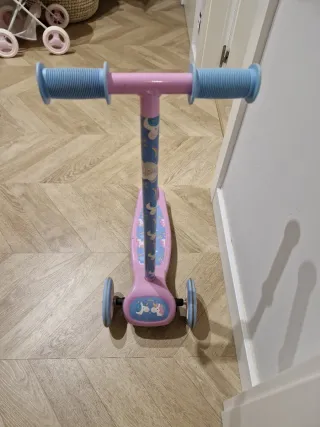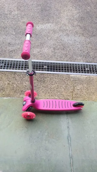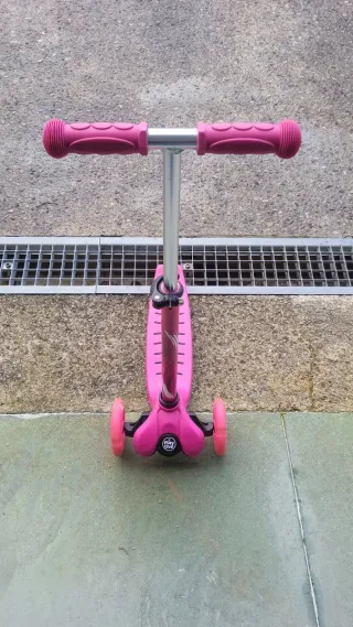 Patinete infantil de tres ruedas en color rosa. Sin estrenar - Tres ruedas para mayor estabilidad. - Color rosa. - Manillar ajustable en altura. - Plegable. - Plataforma antideslizante. - Es de plástico y aluminio. Está en Padrón