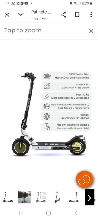 Patinete eléctrico SmartGyro Z-ONE en color blanco y negro. - Diseño moderno y deportivo. - Ruedas con detalles amarillos. - Manillar ajustable. -Sin estrenar, vendo porque es un regalo y no voy a usarlo