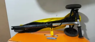Patinete Oxelo Decathlon para niños, plegable. Está en buenas condiciones y listo para usar. - Plegable para facilitar su transporte y almacenamiento. - Doble freno, de maneta y de pie. - Altura regulable - Diseño resistente y ligero. - Color negro y amarillo.