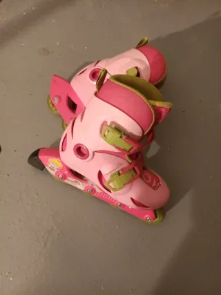 Patines en línea Oxelo en color rosa, talla 30-32. - Diseño infantil. - Cierre con cordones y hebillas. - Ruedas de poliuretano.