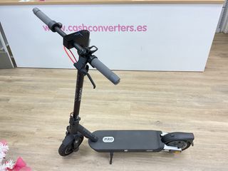 Patinete plegable de color negro y plateado. Ideal para desplazamientos urbanos. - Manillar ajustable. - Ruedas de goma. - Plataforma antideslizante. Con suspension delantera solo sa sacado 1 vez a la calle esta nuevo