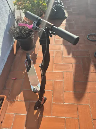 Patinete eléctrico en buen estado, ideal para desplazamientos urbanos. Es plegable y fácil de transportar. - Diseño moderno y funcional. - Ruedas resistentes para mayor durabilidad. - Bolsa de transporte incluida.