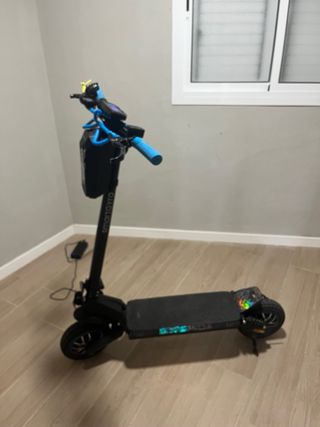 Patinete eléctrico de color negro, ideal para desplazamientos urbanos. -Precio negociable - Manillar con puños azules. -dual motor -centralita cambiada-45km/h -35km de autonomia, 60km si esta limitada -1400-1500km de uso aprox -tiene vinilo en el aleron y los laterales -MAS INFORMACION AL PRIVADO