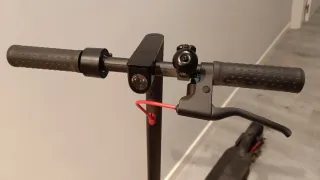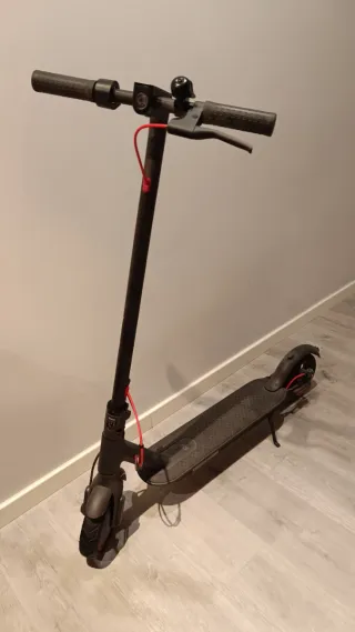 Patinete eléctrico Xiaomi 3 en color negro y detalles en rojo. - Manillar con puños de goma rojos. - Plataforma de pie gris. - Esta todo perfecto solo los rodamientos del motor hacen un ruido pero nada importante