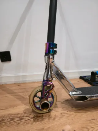 Patinete Oxelo Freestyle MF540 en buen estado. Ideal para trucos y acrobacias. - Plataforma ancha y antideslizante. - Ruedas de alta resistencia. - Manillar resistente - Freno trasero eficaz.