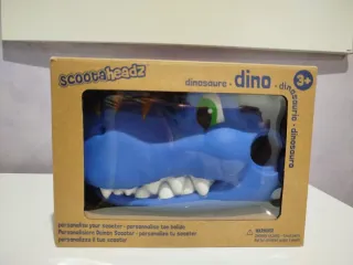 Accesorio para personalizar tu patinete con un divertido diseño de dinosaurio. - Diseño de dinosaurio azul. - Marca: Scootaheadz. - Sin estrenar