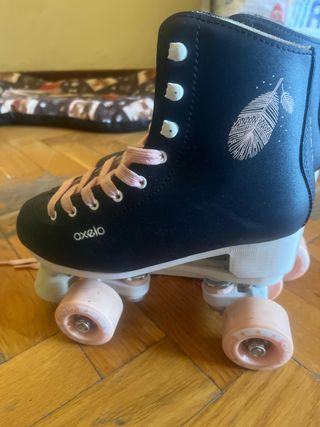 Patines clásicos de estilo retro en color negro con cordones en tono rosa. - Diseño de bota alta. - Ruedas de color rosa. - Cordones de tela. - Base y freno blancos. -Talla 37/38
