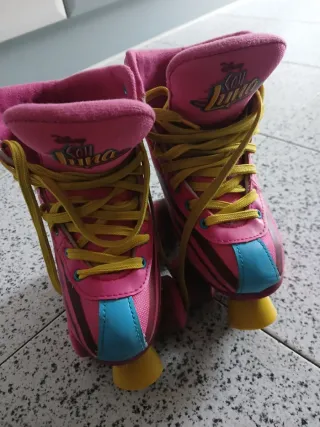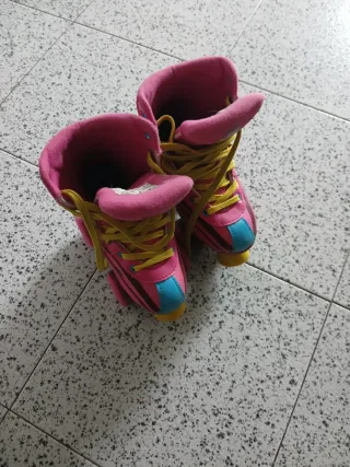 Botas de patinaje altas con cordones amarillos. Diseñadas para patinaje. - Color rosa vibrante con detalles en azul y amarillo. - Cierre de cordones. - Caña alta para mayor soporte.