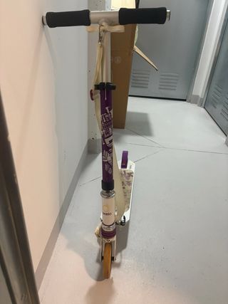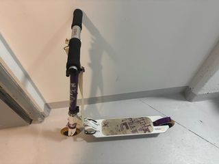Patinete Oxelo de Decathlon en color morado. - Puños de color rosa. - Diseño con estampado de camuflaje en la base. En perfecto estado de conservación. Precio negociable, se entrega en Valdemoro o alrededores.