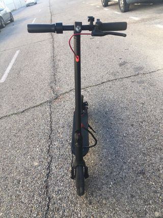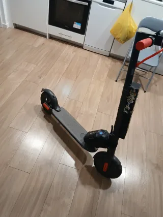 Patinete eléctrico de color negro, ideal para desplazamientos urbanos. Su diseño permite un fácil manejo y transporte. - La batería proviene de un patinete Xiaomi de 7500 mAh. 20km de autonomía aprox. - Varias reparaciones, pero funciona perfectamente. - 3 modos de circulación. 15, 20 y 25 km/h - ruedas macizas en buen estado No negociable, Solo por la batería ya merece la pena el precio