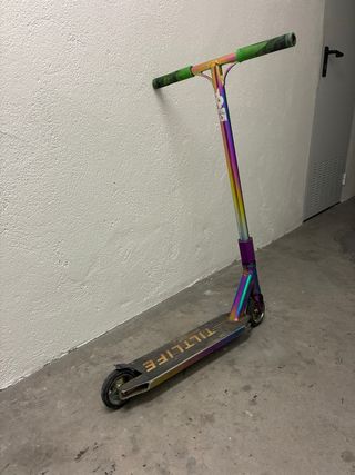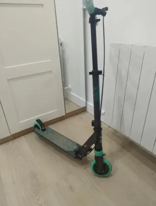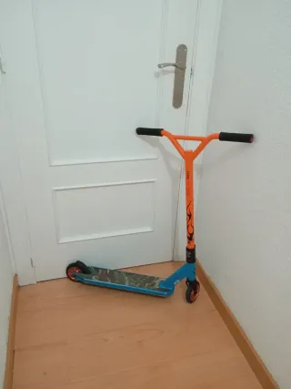 Patinete de estilo libre en color amarillo y negro tiene uso pero se conserva bastante bien lo vendo por que ya no me vale. De trucos para skatepark se puede usar también de normal - Puños negros. - Rueda delantera negra.
