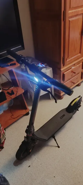 Patinete eléctrico Xiaomi en excelente estado, prácticamente a estrenar, sin desperfectos ni señales, ruedas como nuevas, etc. No tiene ni 50km. tiene luces, delantera y trasera Aún en garantia. Entrego copia de compra para la garantía. Comprado en diciembre. Cumple con todas las normativas. Regalo otra luz para el manillar. - Color negro. - Manillar con puños ergonómicos. - Freno de mano. - Plataforma antideslizante Luces debajo del patin