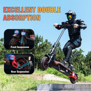 Patinete eléctrico con excelente doble absorción, ideal para todo tipo de terrenos. Se vende por viaje. - Suspensión delantera. - Suspensión trasera.