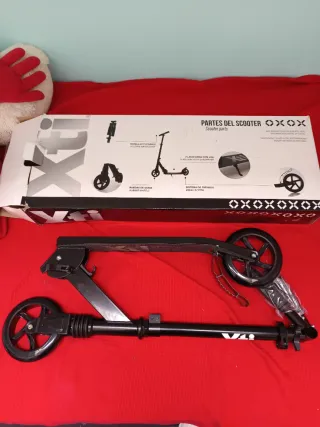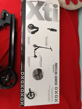 Patinete plegable de la marca Xti en color negro. - Manillar plegable. - Ruedas de goma. - Plataforma con lija. - Sistema de frenado.