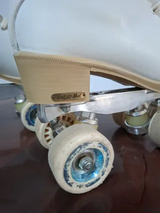 Se vende patines para patinaje artístico, talla 36 y de la marca Belati de color blanco. Incluyen herramienta en forma de T. - Diseño perforado. - Cordones dorados. - Ruedas de patinaje. Siempre se han utilizado con fundas. Los cordones y las plantillas interior sólo se han usado 3meses.