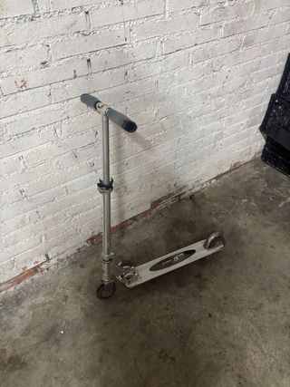 Patinete plegable de aluminio, ideal para desplazamientos urbanos. Las manillas presentan desgaste. - Manillar ajustable en altura. - Ruedas de goma para un mejor agarre. - Plataforma antideslizante.