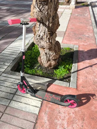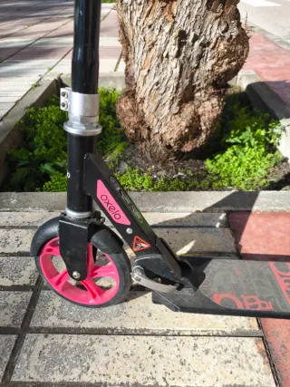 Patinete de Decathlon con freno. - Marca: Oxelo - Color: Negro y rosa